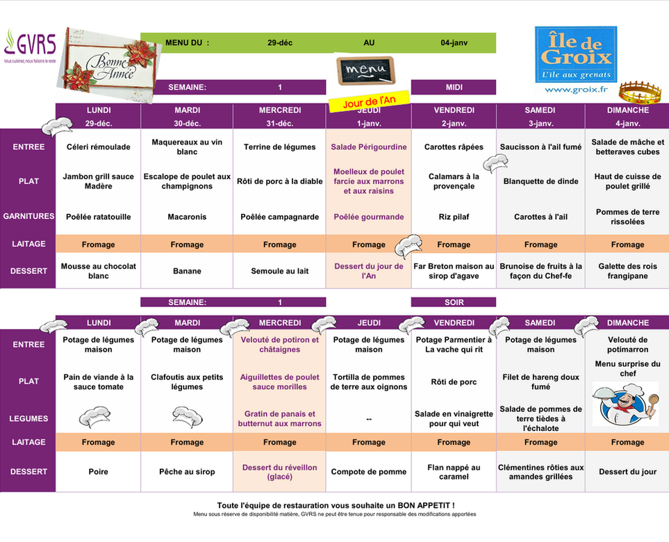Composée de représentants de résidents, de familles, des cuisiniers, une Commission des menus se regroupe toutes les 6 semaines pour faire un point sur les menus de la session précédente et discuter des menus des 6 prochaines semaines.